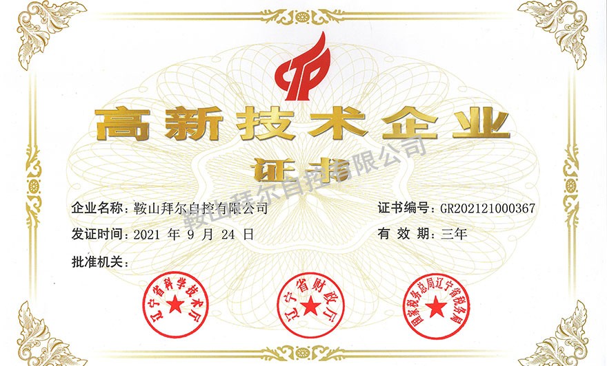 公司被認定為國家高新技術企業、國家知識產權示范企業、遼寧省瞪羚企業、遼寧省專精特新中小企業。
